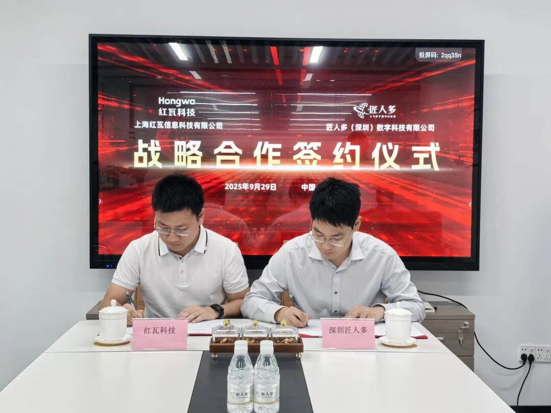 近日,匠人多(深圳)数字科技有限公司(以下简称“匠人多”)与上海红瓦信息科技有限公司(以下简称红瓦科技)正式签署战略合作协议。此次合作将聚焦BIM技术应用与数字化建造领域,通过优势互补、资源整合,共同推动建筑业数字化转型。